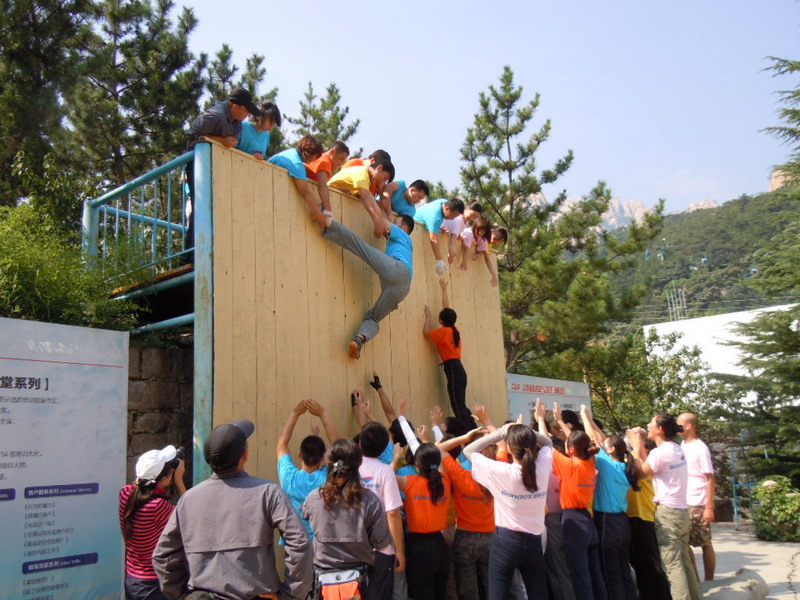 成功取决于坚持到底、永不放弃,创造奇迹往往就在一瞬间。“求生墙”上大家是一个优秀的团队,已经没有了组别界限、没有了男女界限,已经不是一个个独立的个人,而是一个坚不可摧的团队,大家真真切切体会到了“团队可以创造奇迹”。从这个团体项目中我们看到了真诚,看到了朴实,看到了为达目标众人协力、甘于奉献、永不认输的动人一幕,感受着我们亲爱的同事们带来的震撼。搭人墙的,一层不够两层……第一个上去了,第二个上去了……;先上去的,一上去后马上回头将同伴一个一个的往上拽、往后拉……当张育铭和吴炯两位同事利用倒挂金钩的高难度动作翻越求生墙的那一刻,呼吸瞬间暂停了,紧接着就是狂热的欢呼:“我们胜利了”这就是团队的生命力充分的发挥,是人性自然的要求。人生旅途中,唯有遇到逆境才能激发潜在的能量,充分利用生命中那些优秀的潜能,超越自我。